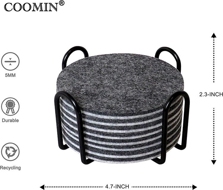 Contenido del paquete: los posavasos modernos COOMIN están en un práctico juego de 10 (4 x 4 pulgadas, 0.197 in de grosor). Soporte de metal de alta calidad incluido. No dejes que otro momento precioso se deslice debido a la preocupación, con estos posavasos ligeros y rústicos podrás relajarte y disfrutar de todos los momentos divertidos con tus amigos y familia.